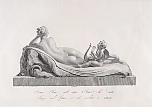 Back view of Venus reclining accompanied by Cupid with a harp, from "Oeuvre de Canova: Recueil de Statues..."