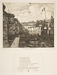 Charles Meryon, born on November 23, 1821, in Paris, was the illegitimate son of English physician Dr. Charles Lewis Meryon and dancer Pierre-Narcisse Chaspoux (stage name Narcisse Gentil) at the Paris Opéra. His half-sister Fanny, from his mother's prior relationship with Viscount Lowther, remained in contact after their mother's death in 1838. Raised partly outside Paris before attending Pension...