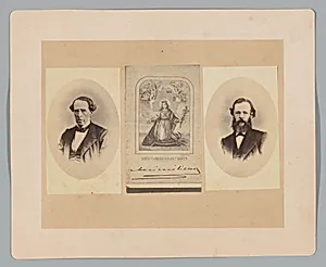 Image (Left): 9.1 × 5.4 cm (3 9/16 × 2 1/8 in.) Image (Center): 9.2 × 5.4 cm (3 5/8 × 2 1/8 in.) Image (Right): 8.9 × 5.4 cm (3 1/2 × 2 1/8 in.) Mount: 18 × 22 cm (7 1/16 × 8 11/16 in.)