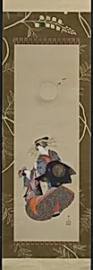 Beauty of the Yoshiwara with Apprentice in Moonlight