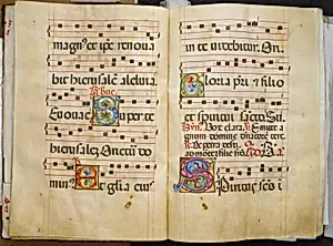 Tempera, gold, and ink on parchment; binding: leather over wood boards with copper alloy corner mounts and bosses