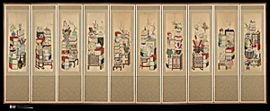 Ten-panel folding screen; ink and color on silk
