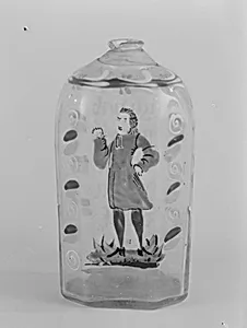 This elegant 18th-century German glass bottle, standing at a modest 5 5/8 inches (14.3 cm) tall, showcases the refined craftsmanship of European decorative arts. Housed in the Metropolitan Museum Art's Department of European Sculpture and Decor Arts, it was generously gifted by John Stemme in 1910. As a product of anonymous artistry, it reflects the era's emphasis on functional yet beautiful household objects, where glassmakers transformed simple silica into translucent treasures. German glass production in the 18th century in regions like Bohemia and the Rhineland, renowned for innovative bl...