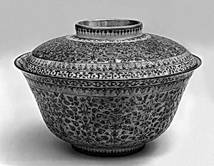 This elegant porcelain bowl with cover hails from China's Qing dynasty during the Qianlong period (6–95), a golden age for imperial ceramics production at the famed Jingdezhen kilns. Standing at 5 3/4 inches tall and 8 3/4 inches in diameter, its graceful form exemplifies the period's mastery of porcelain craftsmanship, where potters achieved translucent bodies and flawless glazes prized by emperors and collectors alike. Adorned with floral motifs hallmark of Qing decorative arts—the bowl reflects the era's fascination with nature's beauty, symbolizing prosperity and harmony in Chinese cultur...