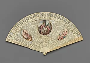 Brisé fan, with representations of classical figures flanking Venus and Cupid