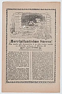 Broadsheet relating to a news story about a young mother who dismembered her newborn, a woman discovering the scene of the crime
