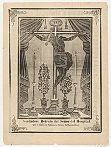 Broadsheet relating to Our Lord of the Hospital (Salamanca, Guanajuato) on a crucifix on an altar