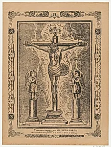 Broadsheet with Christ in the cross flanked by two angels