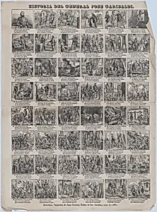 Broadside with 48 scenes relating to the life of Giuseppe Garibaldi by Juan Llorens