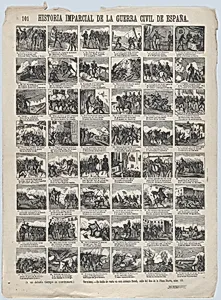 Broadside with 48 scenes telling the 'impartial' story of the civil war in Spain (Part 1)