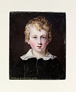 Behold the delicate portrait *Brock Livingston Delapl* (1817), a gem by William Russell Birch, an artist celebrated for capturing early American life. This intimate depiction of a young boy exemplifies the tradition of miniature portraits, cherished as personal keepsakes in the early 19th century. Housed in The Metropolitan Museum of Art's American Wing, it reflects the burgeoning cultural confidence of post-Revolutionary America, where families commissioned such works to preserve loved ones' likenesses amid a mobile society. Crafted in enamel on copper—a technique Birch mastered for its luminous, jewel-like quality—the 3 x 2½-inch piece (sight size) showcases exceptional precision. Enameling involved layering translucent pigments fired onto the metal surface, yielding vibrant colors and enduring detail that rivaled larger paintings. Far from mere novelty, these miniatures held deep emotional and social value, often worn as lockets or brooches, symbolizing familial bonds and status. Acquired through the Maria DeWitt Jesup Fund in 1985, this artwork invites us to ponder the tender humanity behind its tiny frame: a boy's gaze frozen in time, bridging personal memory with America's artistic heritage. A testament to Birch's versatility beyond his famed city views, it highlights the artistry of everyday portraiture in a young nation.