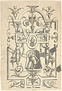 Candelabra Grotesque with a Female Figure in a Niche and Two Sphinxes