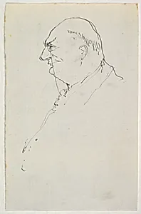 Caricature of a Man Wearing a Monocle Seen in Profile