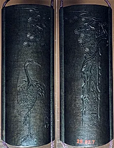 Case (Inrō) with Design of Crane Standing Beneath Pine Tree (obverse); Morning Glory and Inscription (reverse)