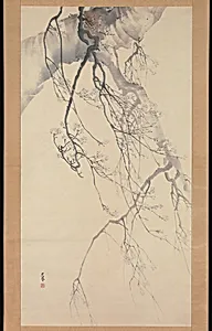 Behold the delicate beauty of *Cherry Blossoms*, masterful hanging scroll by Matsumura Gosh (1752–1811), a leading figure in Japan's Edo period (1615–1868). Created in the 18th century, this ink and color on paper work measures an impressive 69 x 36 7/8 inches, designed to unfurl dramatically in a tokonoma alcove during tea gatherings or seasonal celebrations. Goshun, founder of the Shijō school, blended literati painting influences from China with native Japanese sensibilities, producing poetic scenes that evoke nature's fleeting grace. Cherry blossoms, or sakura, hold profound cultural sign...