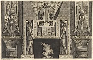 Chimneypiece in the Egyptian style: Giant figures supporting the lintel, flanked by chairs, from "Diverse Maniere d'adornare i cammini..." (Diverse Ways of ornamenting chimneypieces...)