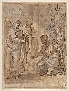 Christ and the Centurion (recto); Figure Waving to Departing Ship (verso).