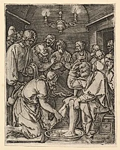 Christ kneeling and washing St Peter's feet, after Dürer