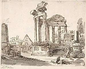 Classical Landscape with Ruins (recto); Two men in Roman military dress (verso)