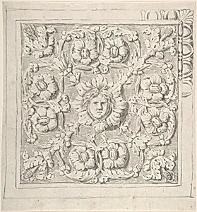 Classical Molding with Human Head at the Center Surrounded by Leaves and Vines