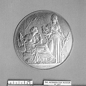 In the late 19th century, medallist Jules-Clément Chap crafted this delicate silvered bronze medal,Conservatory of Music andrical Declamation* (1877), measuring just 2 11/16 inches in diameter. A master of the plaquette form—small, sculptural reliefs popular in Europe for commemorating institutions and events—Chaplain's work exemplifies the Renaissance revival in medal-making, blending intricate engraving with a luminous silver finish that enhances its reflective surfaces and fine details. The medal likely honors the prestigious Paris Conservatoire de Musique et de Déclamation, a cornerstone ...