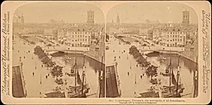 Step into the vibrant streets of 19th-century Copenhagen with this stereoscopic albumen silver print by Underwood & Underwood, in collaboration with Sun Sculpture Works and Studios.itled *Copenhagen, Denmark, metropolis of all Scandinavia*, image captures the city's iconic skyline, bustling with buildings and bridges that define its role as a Scandinavian hub. Mounted at just 8.8 x 17.8 cm, this compact photograph was designed for stereo viewers, merging twin images to create a striking three-dimensional illusion of depth. Produced between the 1850s and 1910s, albumen silver prints like this ...