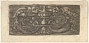 Copy of a Panel with Two Dolphins Facing a Vessel at Center