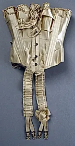 Step into the elegant world of early 20th-century American fashion with this silk corset from B. Altman & Co., 1901. Produced by the renowned New York department store known for its upscale ready-to-wear and luxury goods, this garment exemplifies the height of Edwardian style. Crafted from fine silk, a premium material prized for its sheen, durability, and comfort against the skin, the corset was a staple in women's wardrobes, designed to cinch the waist and create fashionable S-curve silhouettepushing the bust forward hips back for an hourglass effect. Historically, corsets like this one reflected the rigid beauty standards and social expectations of the Gilded Age, where undergarments sculpted the body to fit voluminous gowns and tailored suits. By 1901, innovations in construction allowed for lighter, more flexible designs compared to Victorian predecessors, blending functionality with femininity. This piece, now in the Metropolitan Museum of Art's Costume Institute thanks to a 1952 gift from Mrs. Rudolph Rosenthal, offers a tangible glimpse into how American women navigated fashion's demands amid emerging movements for dress reform. Though not a traditional artwork, its exquisite silk workmanship highlights the artistry of mass-produced couture, bridging commerce and culture in a transformative era.