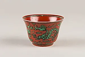 This delicate porcelain cup, crafted in China during the Ming dynasty's Jiajing period (1522–66), exemplifies the era's unparalleled mastery of ceramics. Standing just 1 5/8 inches tall with a mouth diameter of 2 5/8 inches, it was likely designed for intimate use—perhaps sipping tea or wine among the elite. Ming porcelain from kilns like those in Jingdezhen represented the pinnacle of technical innovation, using fine kaolin clay fired at high temperatures to achieve a translucent, resonant body prized worldwide. Adorned with dragons—a recurring motif tagged here—the cup carries profound impe...