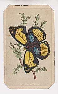 Step into the enchanting world of 19th natural history with the *Cynthia Cenone butterfly card* from Louis Prang & Co.'s *Butterflies and M of America* series (1862–69). This delicate lithograph, measuring just 4 × 2½ inches, captures the intricate beauty of the Cynthia Cenone butterfly in vivid color. Produced by Louis Prang & Co., American printers renowned for chromolithography—a technique that allowed affordable, high-quality color reproductions—these cards brought the wonders of entomology to everyday audiences. Lithography, perfected in the mid-1800s, enabled Prang to layer multiple col...