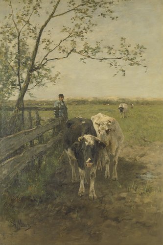Anton Mauve (1838–1888), born Anthonij Rudolf Mauve in Zaandam, Netherlands, hailed from a family of North Holland clergymen. At age 16, he apprenticed under animal painter Pieter Frederik van Os in Haarlem, mastering depictions of livestock, before studying briefly with Wouterus Verschuur, whose equine subjects instilled a lifelong affinity for horses. He honed his plein air technique alongside P...