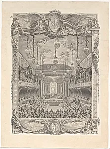 Decoration de la salle de spectacle construite a Versailles pour la representation de la Princesse de Navarre