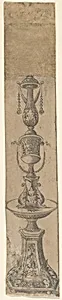 Decorative border panel with a candelabra ornamented with foliate designs, from Life of the Virgin and Christ