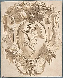 Design for a Cartouche with a Coat of Arms containing a Griffin