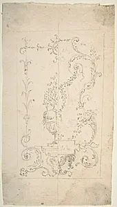 Design for a Cartouche with garlands and antique vase