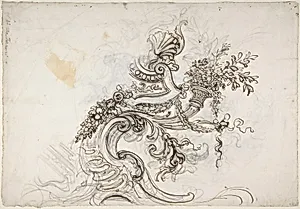 Lorenzo de' Ferrari, a leading Genoese artist of the late Baroque era (active ca. 1680–1744), created this exquisite double-sided drawing as a preparatory design for grand architectural interiors. The recto features an ornate *Design for a Ceiling Decoration*, showcasing intricate motifs suited for the opulent palaces and churches of 18th-century Italy. Flipping to the verso reveals a dynamic rendition of *Daphne Pursued by Apollo*, drawn from Ovid's *Metoses*—a timeless tale of unrequited love where the nymph Daphne transforms into a laurel tree to escape the god's advances. Crafted with pen...