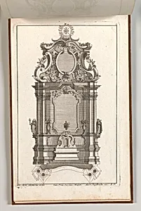 Welcome to the Metropolitan Museum of Art's Drawings and Prints collection, where we encounter *Design for a Monumental Altar, Plate L* from the album *Unterschiedliche Neu Inventierte Altäre mit darzu gehörigen Profillen u. Grundrißen*. Created around 1750–56 by German printmakers Martin Engelbrecht and Johann Michael Leüchte, this etching (8 7/16 × 13 3/4 in.) showcases their collaborative talent for intricate ornamental designs. Engelbrecht, a prolific Augsburg engraver, specialized in architectural patterns, while Leüchte contributed to these elaborate church furnishings. The plate presen...