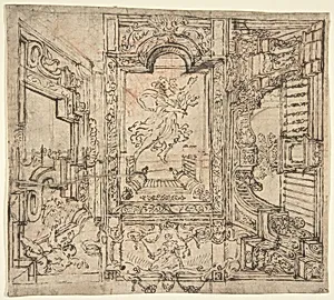 Design for a Painted Ceiling: Perspective Architectural with a Figure at the Center