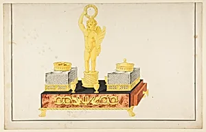 Design for a Pen and Ink Stand with a Cupid and Two Ink Wells