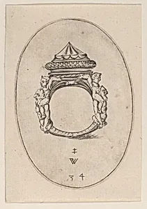 Design for a Ring with a Large Faceted Gemstone, Plate 34 from 'Livre d'Aneaux d'Orfevrerie'