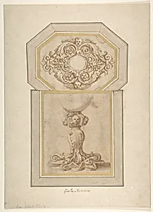 Design for a Sculptural Frame Decorated with Angel Heads, Volutes and Leaves (for a Ceiling ?); Design for a Base Decorated with Angel Heads, Volutes and Leaves