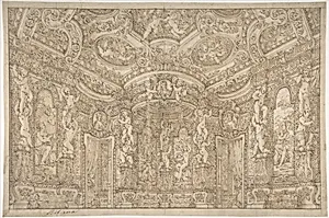 This drawings|ornament & architecture titled "Design for a Stage Set of a Palace Interior Decorated with Putti, Garlands and Three Portrait Medallions" by Ferdinando Galli Bibiena dates to ca. 1680–1710. Executed in pen and brown ink over traces of graphite, this work exemplifies the craftsmanship associated with Drawings and Prints. The piece demonstrates the technical skill and artistic vision characteristic of its period. The work's presence in a major museum collection attests to its signifi...