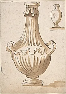 Design for a Vase: two handles, no cover. In upper right corner, a smaller, simpler shape (recto); Part of a Chalk Drawing (verso)