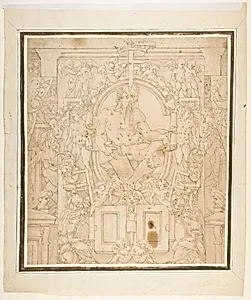 Design for a Wall Decoration with a River God and Putti carrying the Symbols of King François I