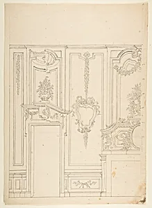 Design for a Wall Elevation with Halved Alternate Designs for the Doorway (recto); Designs for a Quarter of a Ceiling, Design for a Wall Elevation (verso)