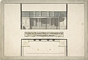Design for an Orchestra Gallery in an Assembly Room, Plan and Elevation