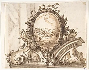 Design for an Overdoor Decoration with Variant (recto); Sketch of a Marbled Wall (verso)