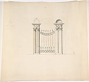 Design for Gate Piers with Paired Pilasters and Domed Caps, and a Gate