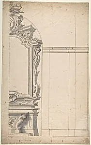 Design for one half of an Altar with a Pilastered Wall at the Right