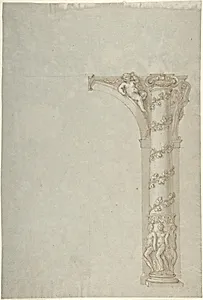 Design for the Bay of an Arcade with Female Figures at the Base and an Arch with a Putto in the Spandrel